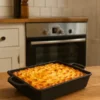 The extended depth makes it ideal for bubbling lasagna, thick casseroles, baked pasta, or dessert bakes that need extra room. With its flat base and smooth matte black finish, it combines practicality with timeless visual appeal.