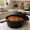 With its compact size and enclosed design, this Dutch oven offers excellent moisture retention, perfect for braising, baking, and slow-cooking meals. The tight-fitting lid helps lock in steam and flavor, while wide loop handles allow safe and easy carrying, even when hot.