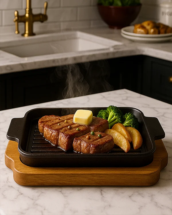 Enjoy stovetop-to-table convenience and the signature sizzling sound and aroma that elevate every meal. Krucible Kitchen’s matte black cast iron finish ensures elegant plating while being built to last with rust-resistant strength.